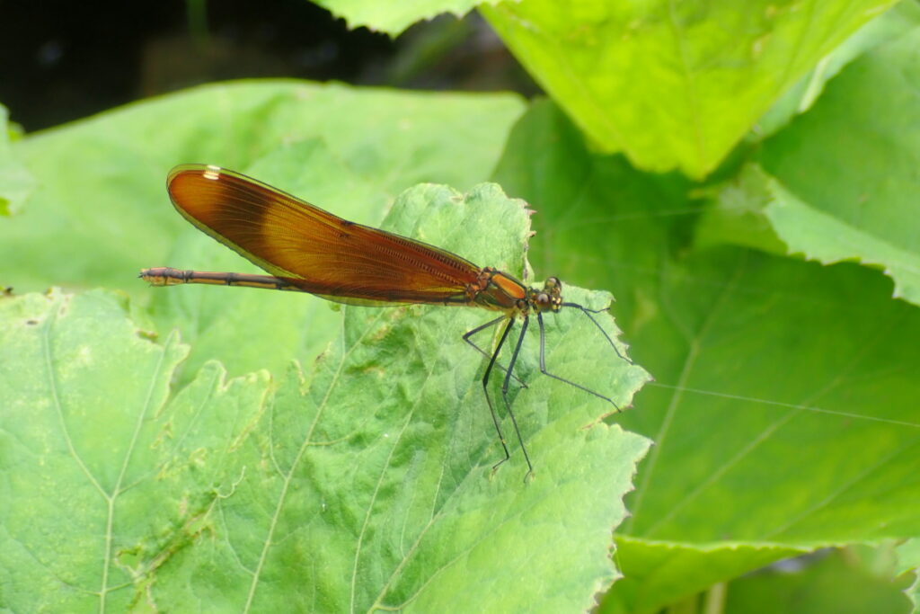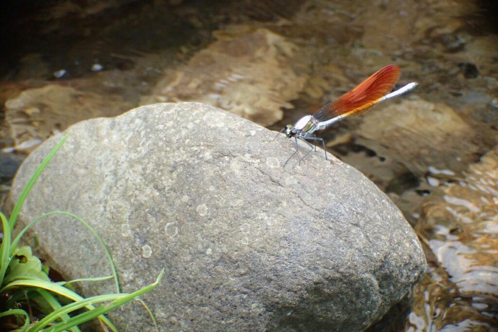 カワトンボゾーンまで下ってくると、往路でははるか眼下の川辺にいたトンボたちが再登場。