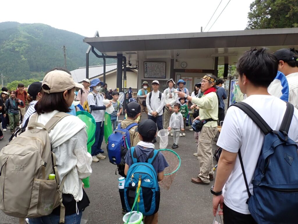 朝9時半に駅前に集合して受付・事前説明をしたら隊列をなして山へ向かって進軍開始。